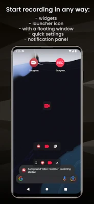 แอปพลิเคชันล้ำสมัยสำหรับการบันทึกวิดีโอเบื้องหลังอย่างราบรื่น ควบคุมง่ายผ่านวิดเจ็ต ปุ่มตั้งค่าด่วน หรือหน้าต่างลอยที่ซ้อนทับแอปอื่น ๆ จับภาพช่วงเวลาสำคัญได้อย่างไม่สะดุดและปลอดภัย