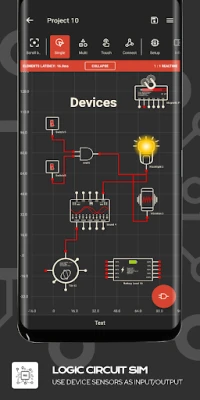 ยกระดับการทดลองของคุณไปอีกขั้นด้วยความสามารถในการเชื่อมต่อวงจรของคุณเข้ากับโลกแห่งความเป็นจริง เครื่องมือจำลองนี้ให้คุณใช้เซ็นเซอร์ของอุปกรณ์เป็นอินพุตได้อย่างชาญฉลาด ไม่ว่าจะเป็นเซ็นเซอร์วัดระยะใกล้/ไกล (Proximity), เซ็นเซอร์แสง, ตัวตรวจจับการชาร์จ, เซ็นเซอร์ทิศทาง, มาตรความเร่ง, ปุ่มปรับระดับเสียง, เซ็นเซอร์แบตเตอรี่, ตัวตรวจจับการเอียง, มาตรวัดเสียง และเซ็นเซอร์สนามแม่เหล็กไฟฟ้า (รวมถึงเซ็นเซอร์ความดันหากอุปกรณ์รองรับ) นอกจากนี้ คุณยังสามารถควบคุมส่วนประกอบต่างๆ ของอุปกรณ์เป็นเอาต์พุตได้ เช่น เสียงออด (Buzzer), การสั่น, การสร้างเสียงความถี่ต่างๆ และไฟฉาย ผนวกกับคลังองค์ประกอบอิเล็กทรอนิกส์ที่ครอบคลุม ทั้งเกตลอจิกหลากหลายชนิด, อาร์เรย์ที่ตั้งโปรแกรมได้, แล็ทช์, ฟลิป-ฟลอป, ตัวกำเนิดความถี่ ไปจนถึงหน้าจอแสดงผลประเภทต่างๆ ทำให้ทุกแนวคิดเชิงลอจิกของคุณเป็นจริงได้ในที่เดียว
